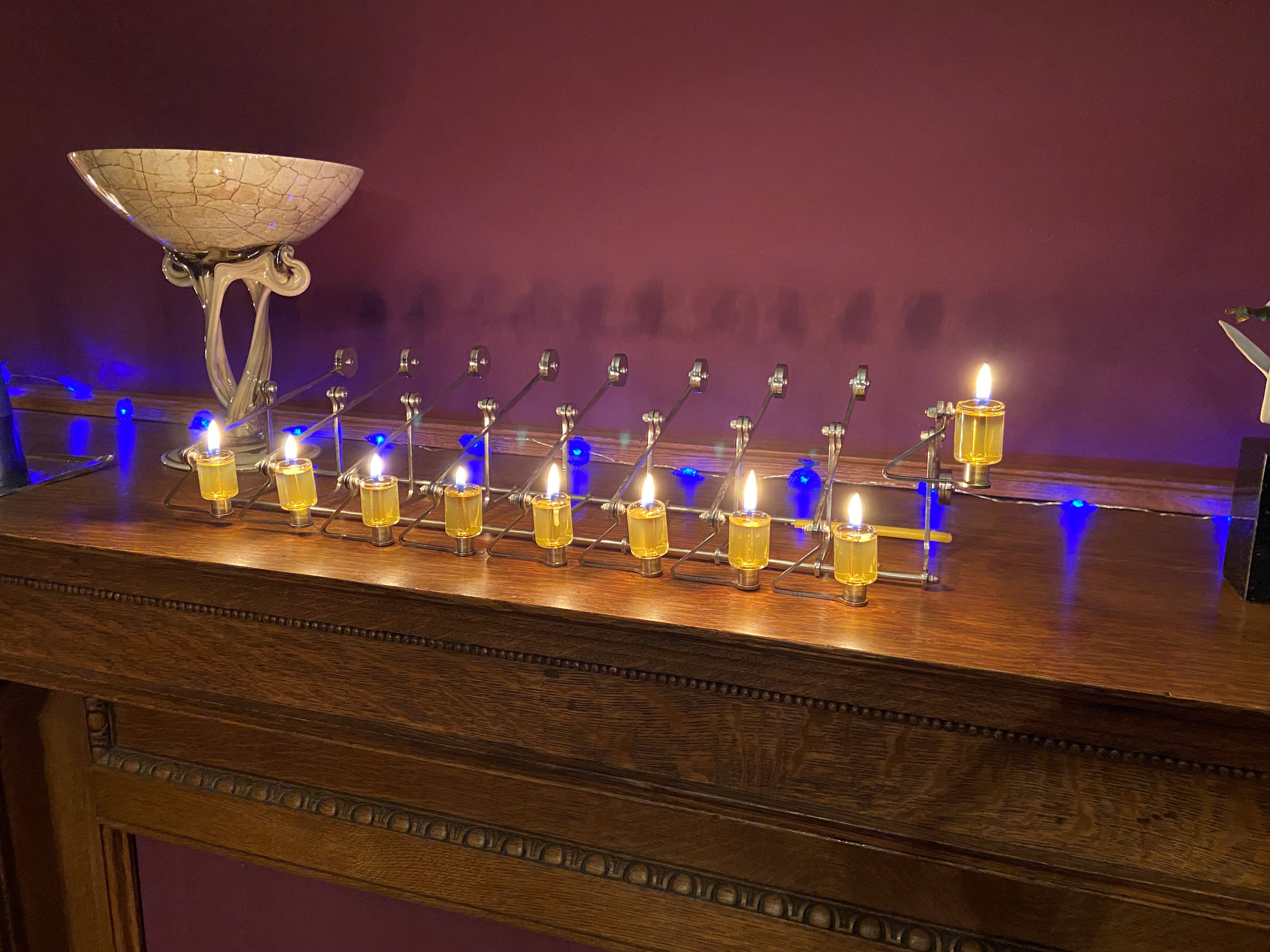 This year, our 1895 Baltimore rowhome turned 130 years old. We live on Eutaw Place near Beth Am and, beginning in the early twentieth century, a succession of Jewish families purchased and lived in the home. Sometimes I consider our deep wooden windowsills and wonder how many previous menorahs shone there in the decades when Reservoir Hill was at the heart of the Jewish community. For many years when the kids were younger, we placed our family hanukiyot in those windows so that passersby could see them from the street. (We did so again in 2023 after Oct. 7 as a reminder we need not and would not be afraid to identify ours as a Jewish home). In most recent years, though, they’ve lived on our dining room mantel and radiator, still by a window, but where we can admire their glow while eating our latkes.
